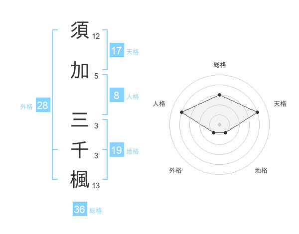 須加 三千楓さんを姓名の画数から五運を鑑定