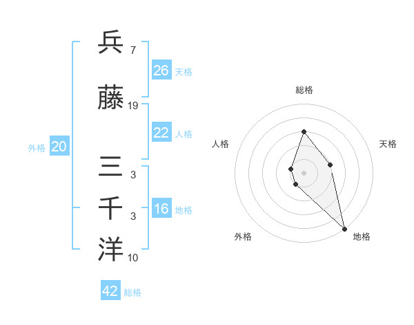 兵藤 三千洋さんを姓名の画数から五運を鑑定