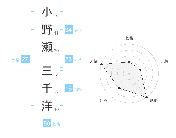 小野瀬 三千洋さんの総格は50画の2点!