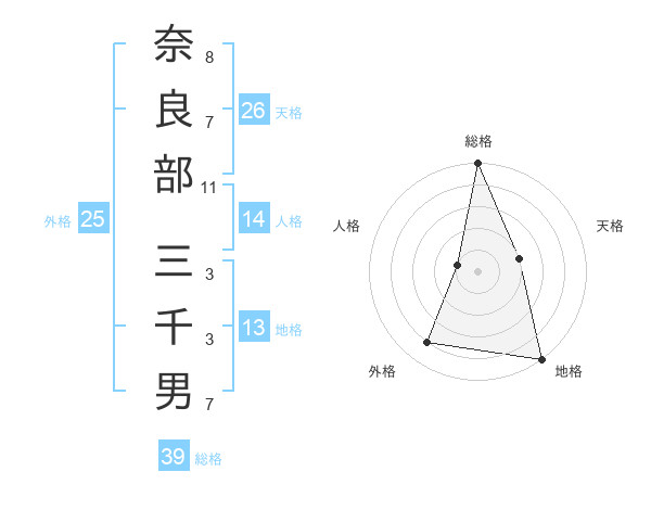 奈良部 三千男さんの総格は39画の5点!