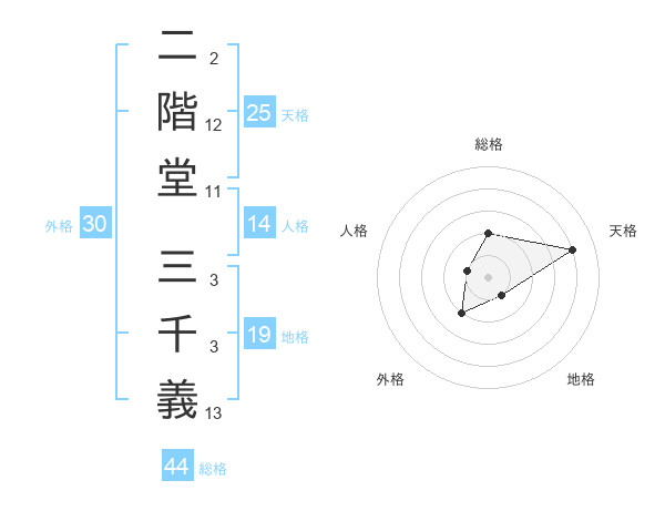 二階堂 三千義さんを姓名の画数から五運を鑑定