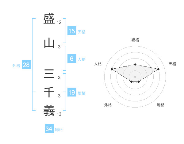 盛山 三千義さんを姓名の画数から五運を鑑定