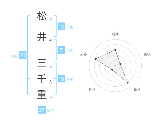 松井 三千重さんの総格は27画の3点
