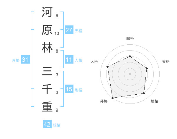 河原林 三千重さんの総格は42画の3点!
