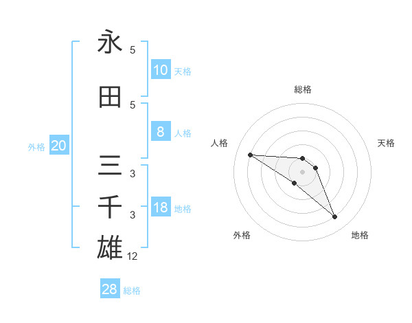 永田 三千雄さんを姓名の画数から五運を鑑定