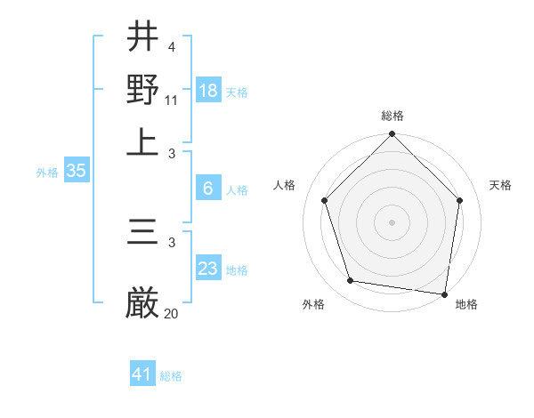 井野上 三厳さんを姓名の画数から五運を鑑定