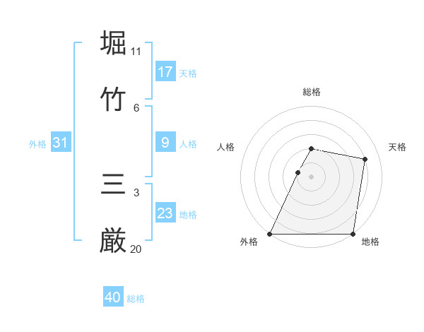 堀竹 三厳さんを姓名の画数から五運を鑑定