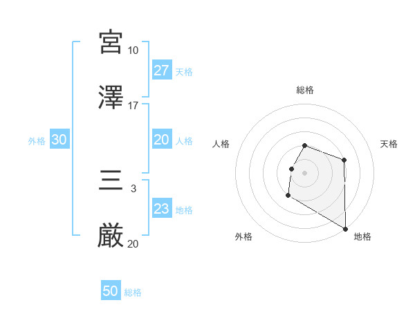 宮澤 三厳さんの総格は50画の2点!