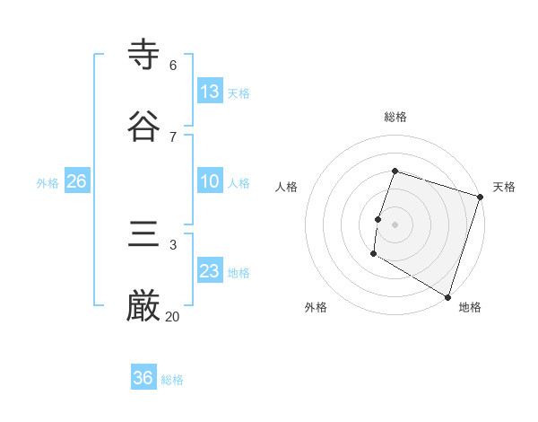 寺谷 三厳さんを姓名の画数から五運を鑑定