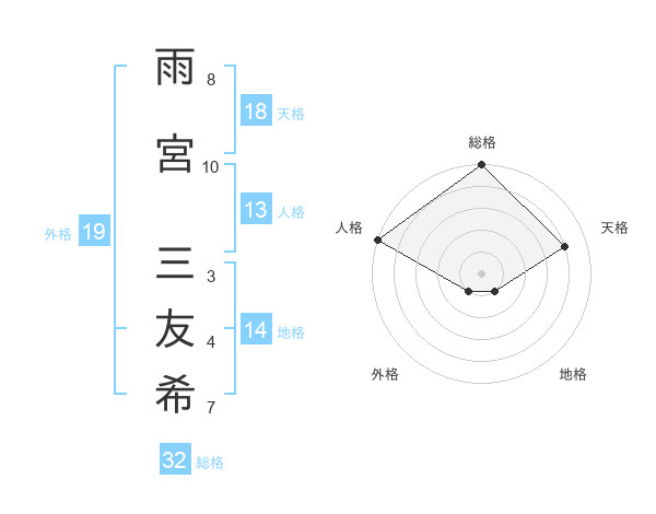 雨宮 三友希さんの総格は32画の5点