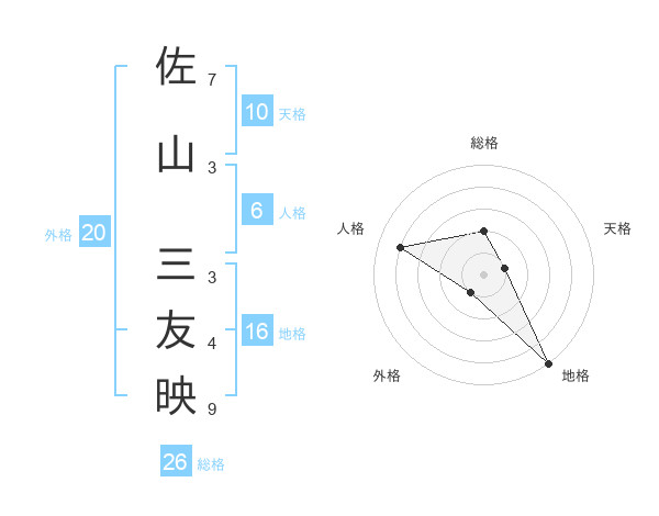 佐山 三友映さんを姓名の画数から五運を鑑定