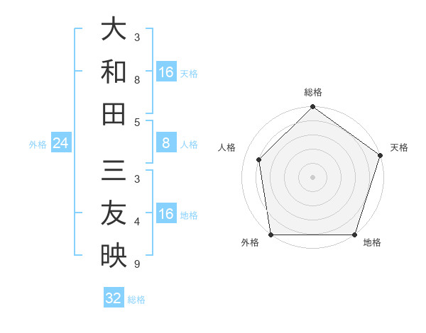 大和田 三友映さんを姓名の画数から五運を鑑定