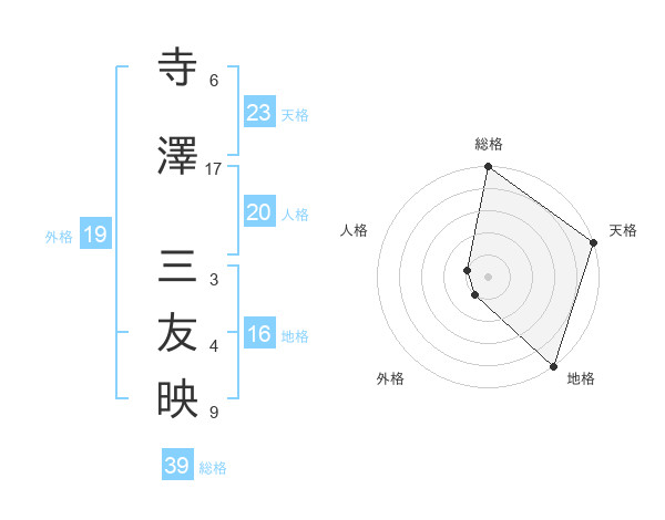 寺澤 三友映さんを姓名の画数から五運を鑑定