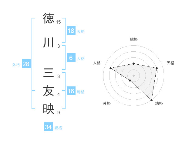 徳川 三友映さんを姓名の画数から五運を鑑定