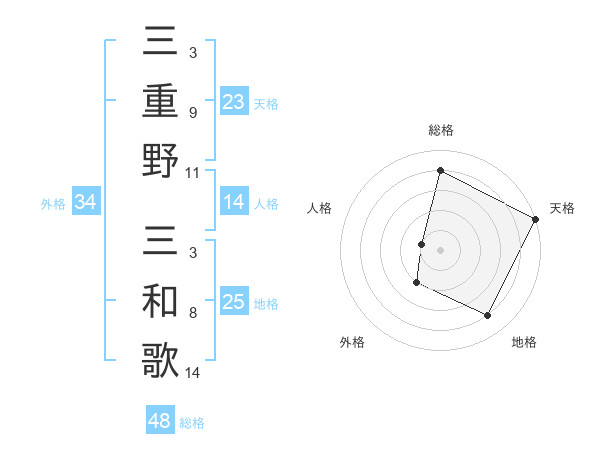 三重野 三和歌さんを姓名の画数から五運を鑑定
