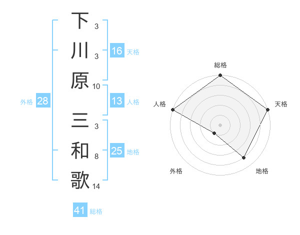 下川原 三和歌さんを姓名の画数から五運を鑑定