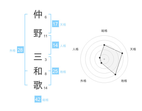 仲野 三和歌さんを姓名の画数から五運を鑑定