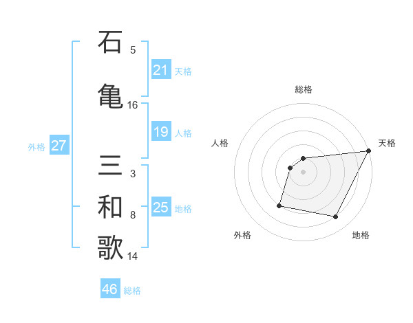 石亀 三和歌さんを姓名の画数から五運を鑑定