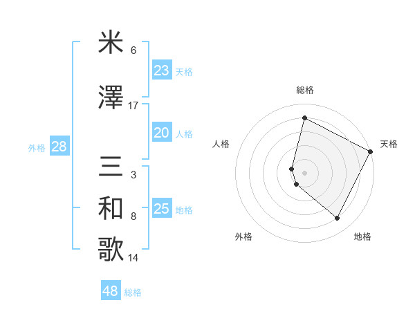 米澤 三和歌さんを姓名の画数から五運を鑑定