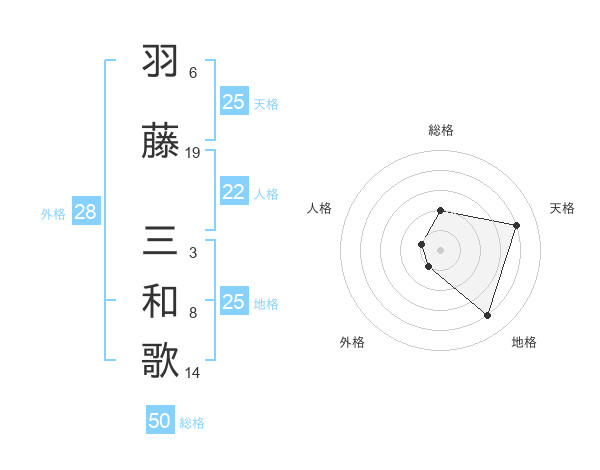 羽藤 三和歌さんを姓名の画数から五運を鑑定