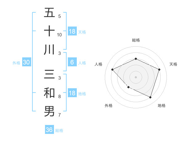 五十川 三和男さんの総格は36画の3点!