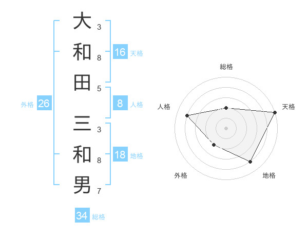 大和田 三和男さんの総格は34画の2点