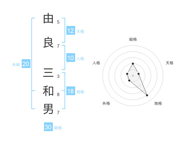 由良 三和男さんの総格は30画の2点