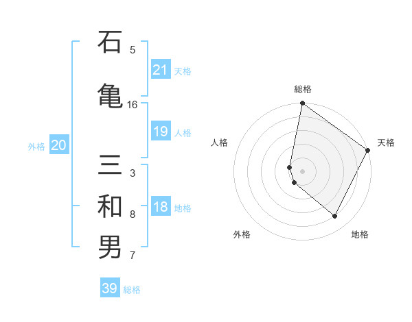 石亀 三和男さんを姓名の画数から五運を鑑定