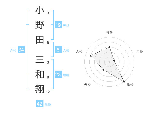 小野田 三和翔さんの総格は42画の3点