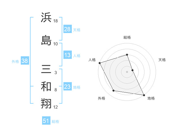 浜島 三和翔さんを姓名の画数から五運を鑑定