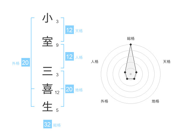 小室 三喜生さんを姓名の画数から五運を鑑定