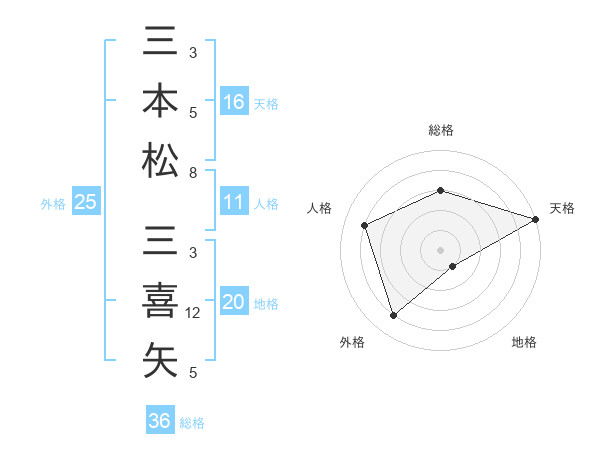 三本松 三喜矢さんを姓名の画数から五運を鑑定