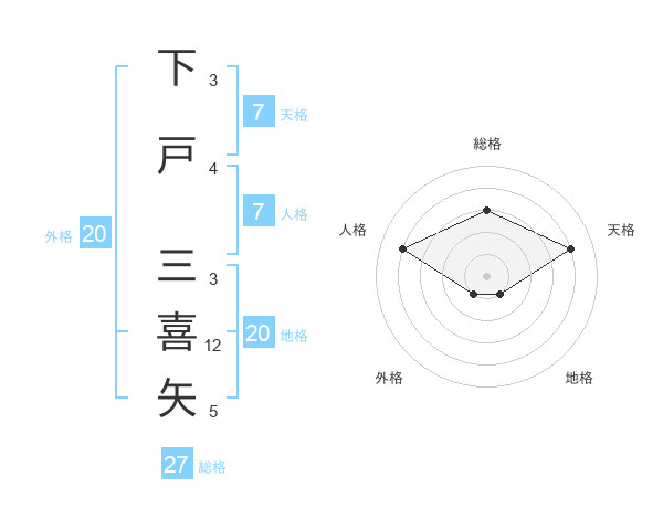 下戸 三喜矢さんを姓名の画数から五運を鑑定