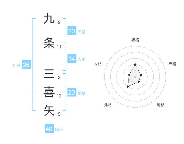 九条 三喜矢さんを姓名の画数から五運を鑑定