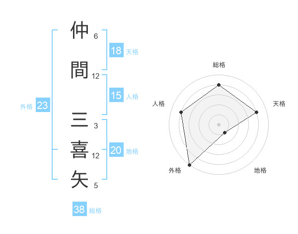 仲間 三喜矢さんを姓名の画数から五運を鑑定
