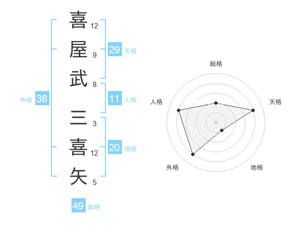 喜屋武 三喜矢さんを姓名の画数から五運を鑑定