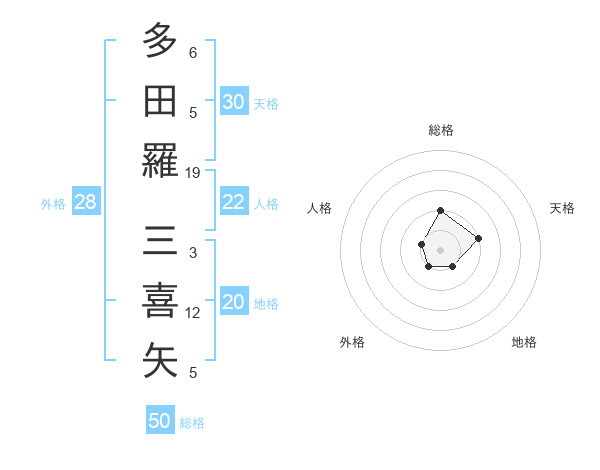 多田羅 三喜矢さんを姓名の画数から五運を鑑定