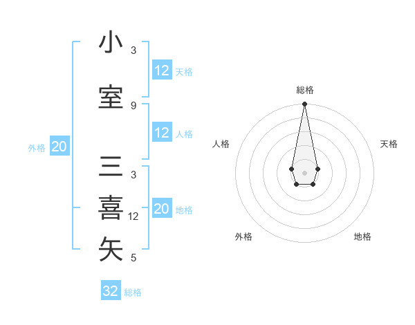 小室 三喜矢さんを姓名の画数から五運を鑑定