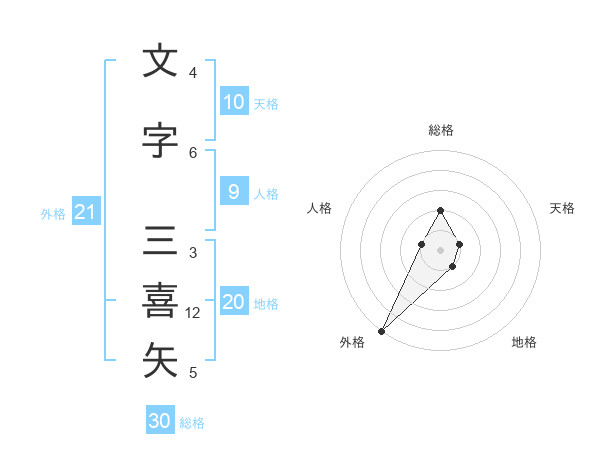 文字 三喜矢さんの総格は30画の2点!