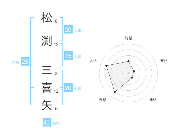 松渕 三喜矢さんを姓名の画数から五運を鑑定