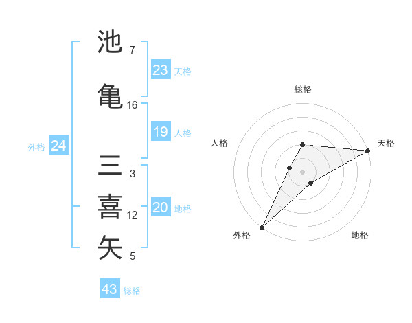 池亀 三喜矢さんの総格は43画の2点!
