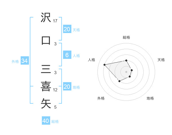 沢口 三喜矢さんを姓名の画数から五運を鑑定