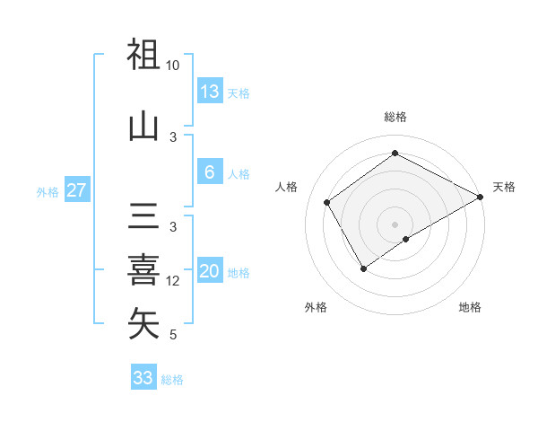 祖山 三喜矢さんを姓名の画数から五運を鑑定