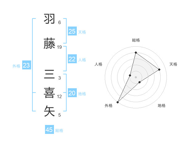 羽藤 三喜矢さんの総格は45画の4点!