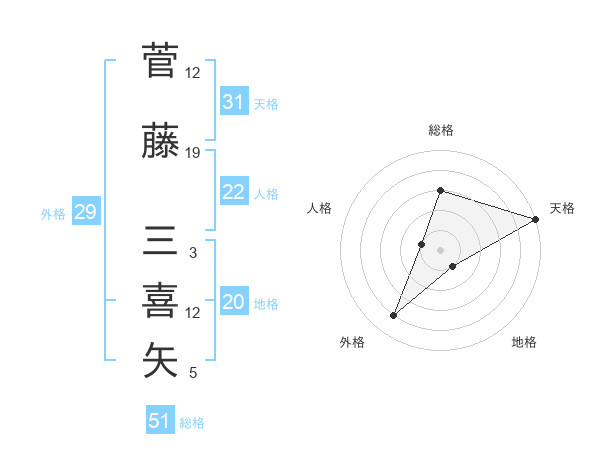 菅藤 三喜矢さんを姓名の画数から五運を鑑定