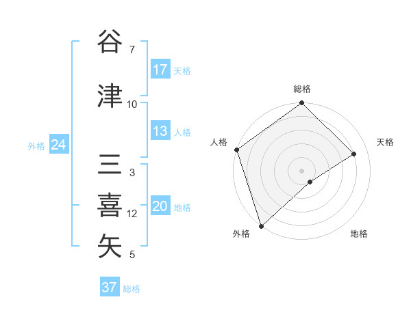 谷津 三喜矢さんを姓名の画数から五運を鑑定