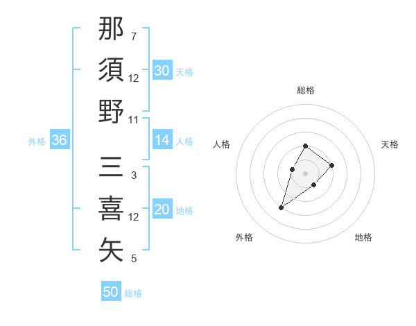 那須野 三喜矢さんを姓名の画数から五運を鑑定