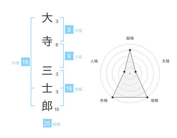 大寺 三士郎さんの外格は16画の5点!