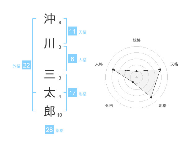 沖川 三太郎さんの天格は11画の4点!