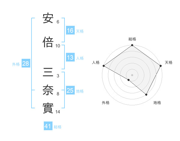 安倍 三奈實さんの天格は16画の5点!